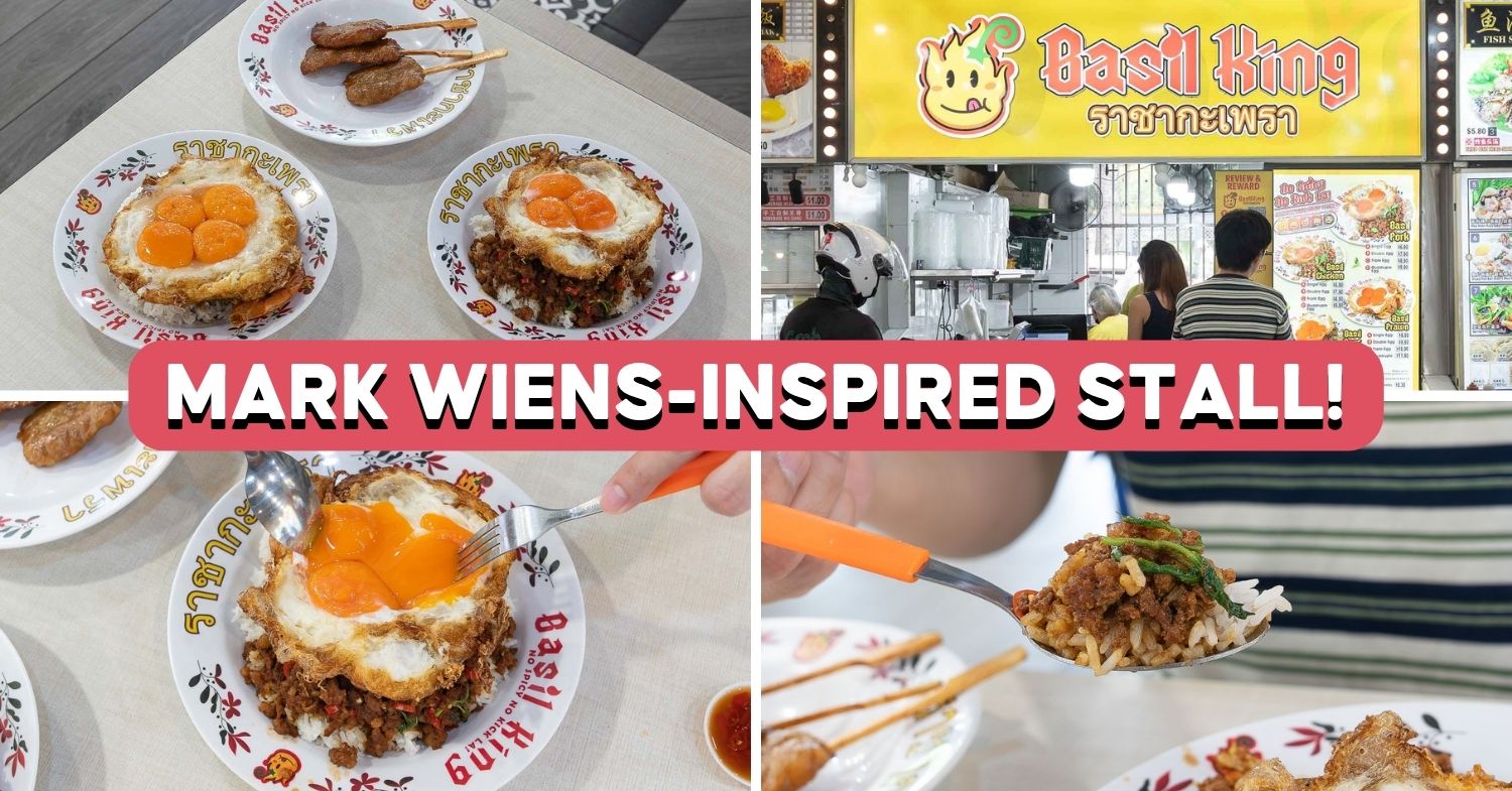 Those familiar with the American food vlogger Mark Wiens may notice a striking resemblance between his Thai pad krapow (basil pork rice) brand, Phed Mark, and local stall Basil King. From its fireball mascot to its brand aesthetic, the similarities are uncanny. Of course, the menu also bears a close resemblance, with pad krapow the star of the show here.