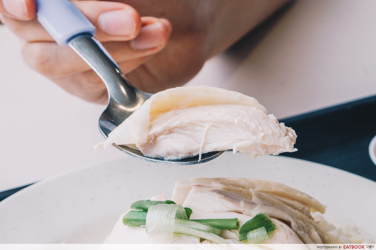I’ll let the picture of this beautifully presented chicken speak for itself. There’s no need to spew out a slew of words to describe it. It’s just magnificent in its own right. The porcelain-white flesh, thickly sliced chunks, and a layer of flavourful gelatinous skin is enough to make anyone a convert.