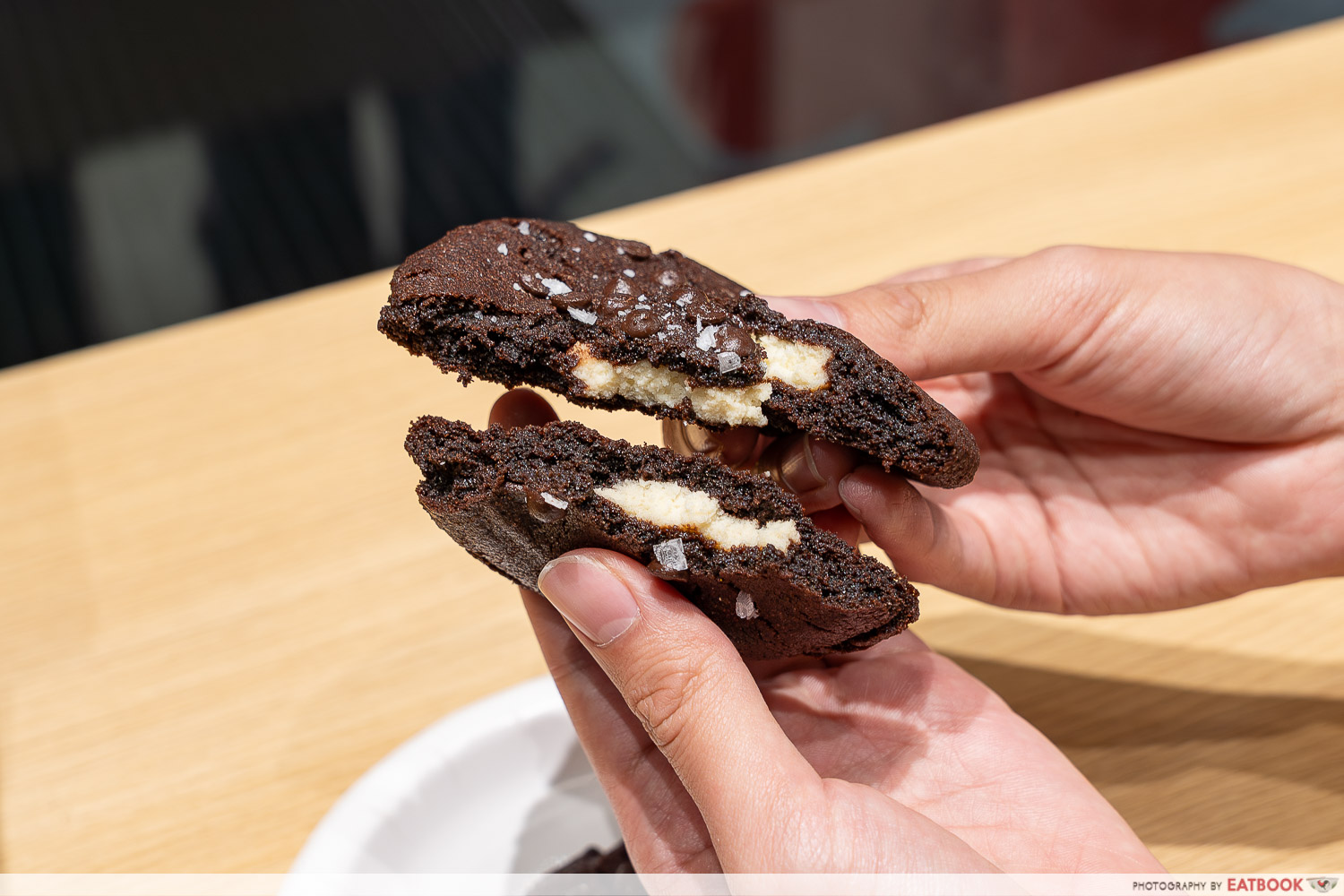 A surprising pairing was dipping their Dark Chocolate Sea Salt Cookies ($4.50), with a cream cheese interior, into the cheesecake. The cookies’ earthy chocolate flavours provided a nice contrast, balancing out the creaminess of the pair. You can purchase these cookies on their own at a discount ($3.50) with any other purchase until 31 January.