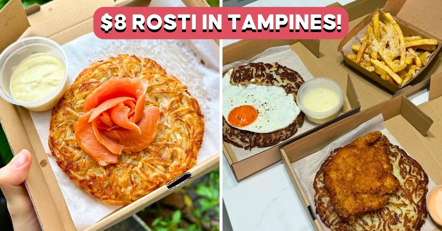 Whenever someone mentions rosti, Marche’s iconic, but pricey, pan-fried potato pancakes are usually what comes to mind. That’s why we were glad to learn about Hippopotato, a new home-based cafe in Tampines serving up affordable rosti sets from $8. The home cafe is helmed by an ex-Marche chef!