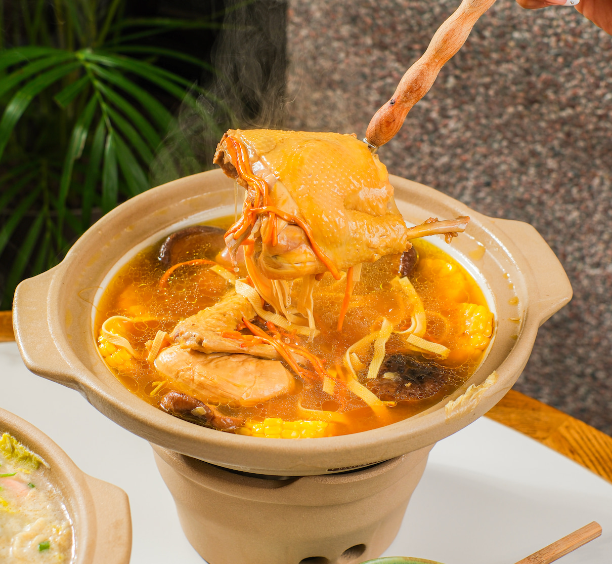 Finally, end your meal on a sweet note with the Traditional Double-Boiled Pear Soup with White Fungus ($11.80++). This dessert is made by slowly simmering snow pear, white fungus, goji berries, and red dates, resulting in a light-tasting broth with a hint of sweetness.