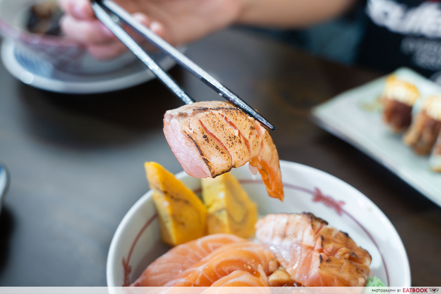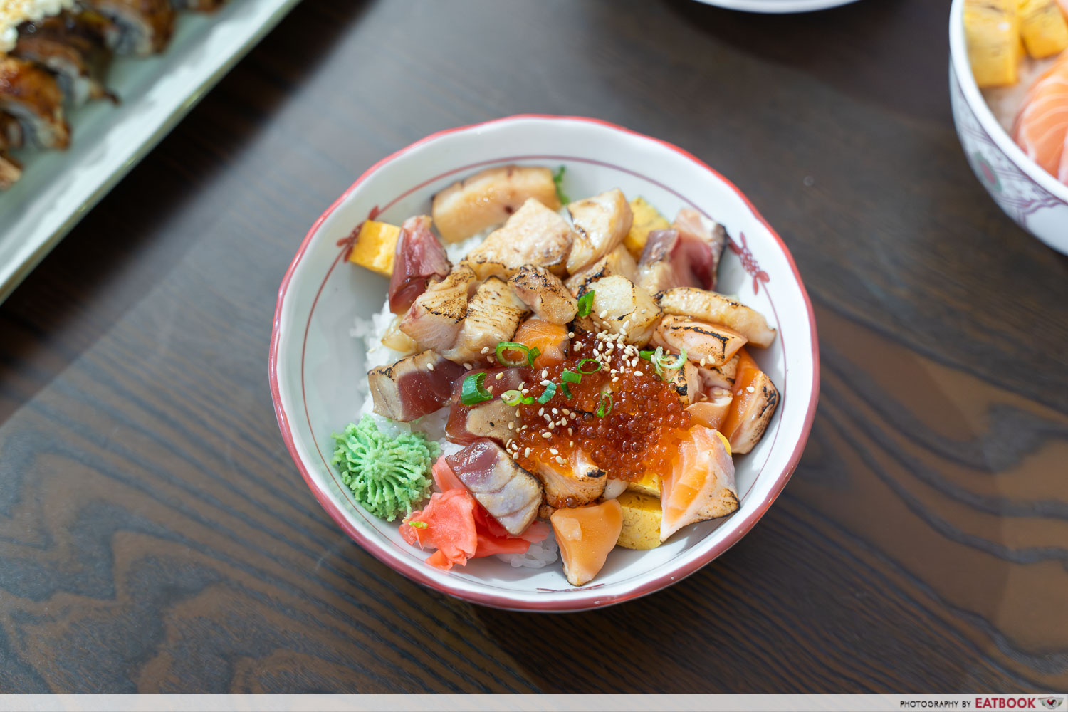 The first thing that struck us was the pure quality and freshness present throughout the bowl. Each piece of salmon sashimi had a glossy exterior, offering a satisfying bite before melting into a rich, buttery mouthfeel. The indulgent, thick-cut salmon belly took things a step further, with plenty of umami packed into it. Then there’s the aburi salmon, lightly blowtorched to impart a subtle smoky char, further enhancing its flavours.