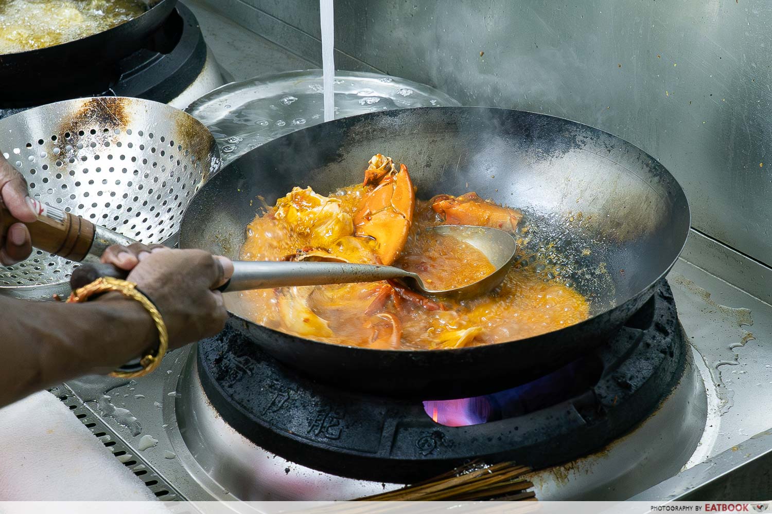 Of course, we had to try his Curry Fish Head ($30), a quintessential at any seafood zi char stall. It’s cooked with a housemade spice paste that features over 10 ingredients, including an intense chilli paste fermented for four days. The humongous bowl of curry is also packed with vegetables such as okra, cabbage, and brinjal.